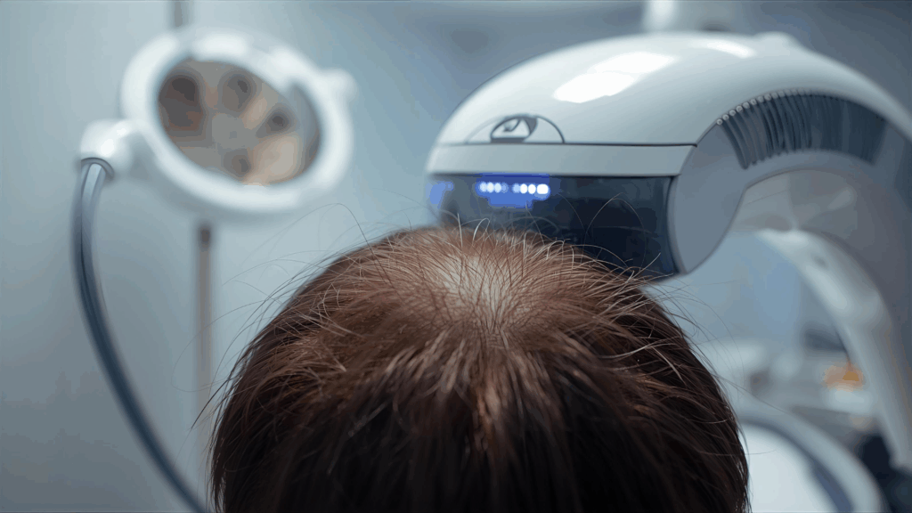 With gentle, medical-grade light, this therapy energizes weak scalp cells and improves blood flow. It helps prolong the hair growth cycle while reducing inflammation. The treatment is painless and often used as a complementary step alongside PRP or mesotherapy.